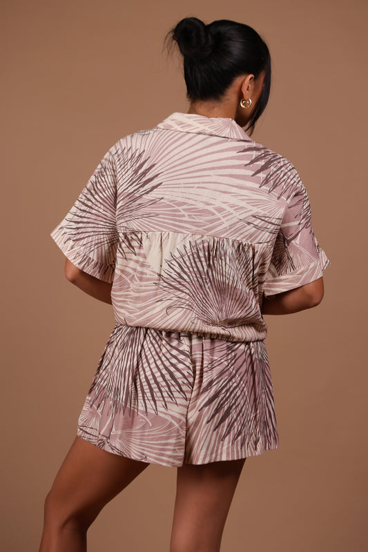 Elevate your summer wardrobe with this expertly designed matching set featuring a button-down top and shorts. This set offers effortless style and comfort for warm days. We've got you covered for all your summer adventures
