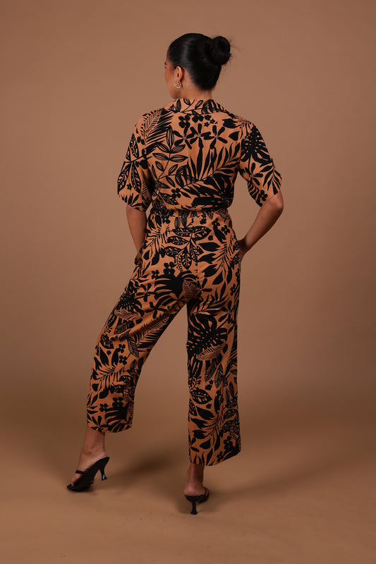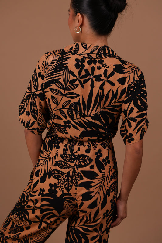 The Coco Jumper combines effortless sophistication with practical versatility. This collared, sleeved jumpsuit features a refined silhouette that transitions seamlessly from casual outings to elevated occasions. The structured collar and tailored sleeves provide polished definition, while the streamlined cut flatters various body types.