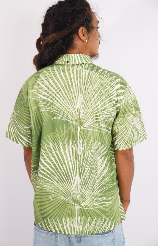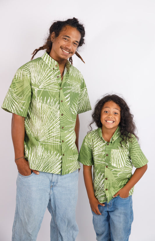 Men's Aloha Shirt Full Button Down| Loulu Palm Green