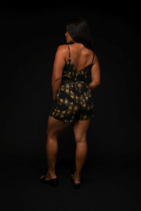 The Noe Romper combines effortless elegance with thoughtful design details. This short romper features a classic button-down front and delicate spaghetti straps that create a refined silhouette. The standout separate tie detail adds versatility—wear it cinched at the waist for definition or leave it loose for a relaxed vibe. Most importantly, this romper comes with pockets making it extra comfortable.