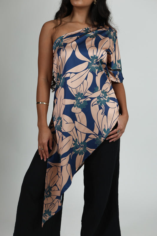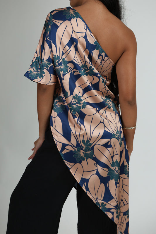 Elevate your style with the Hoku One Shoulder Blouse with its stunningly asymmetrical design. A statement top with a unique design now in our satin fabric.