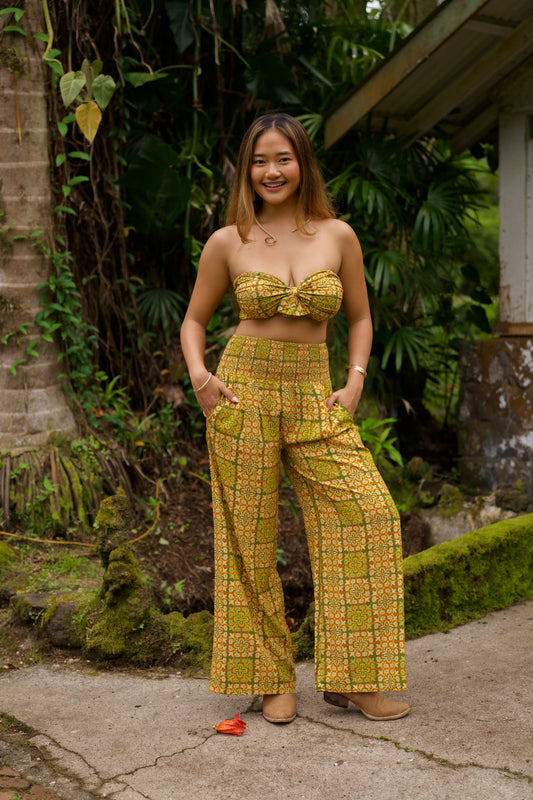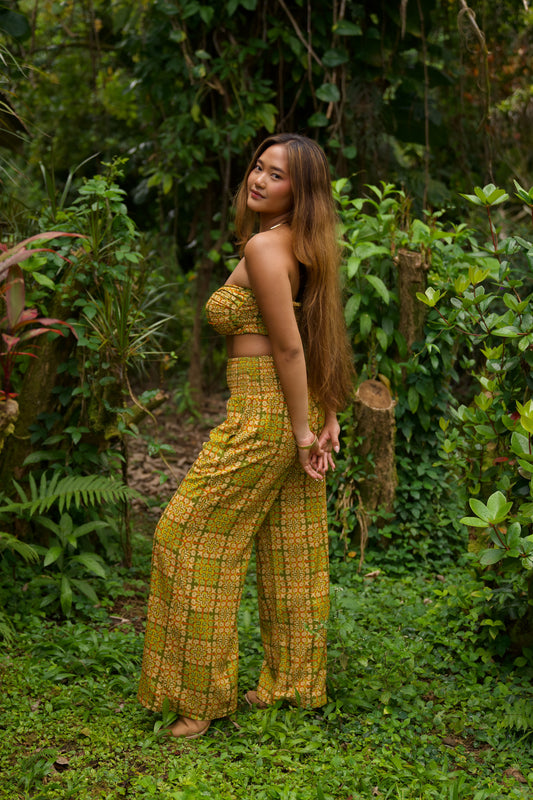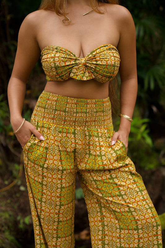 The Loke Set pairs a sleek bandeau top with tailored long pants. This coordinated two-piece delivers effortless sophistication—wear it as a complete ensemble for a polished look, or style the pieces separately for versatile everyday wear.