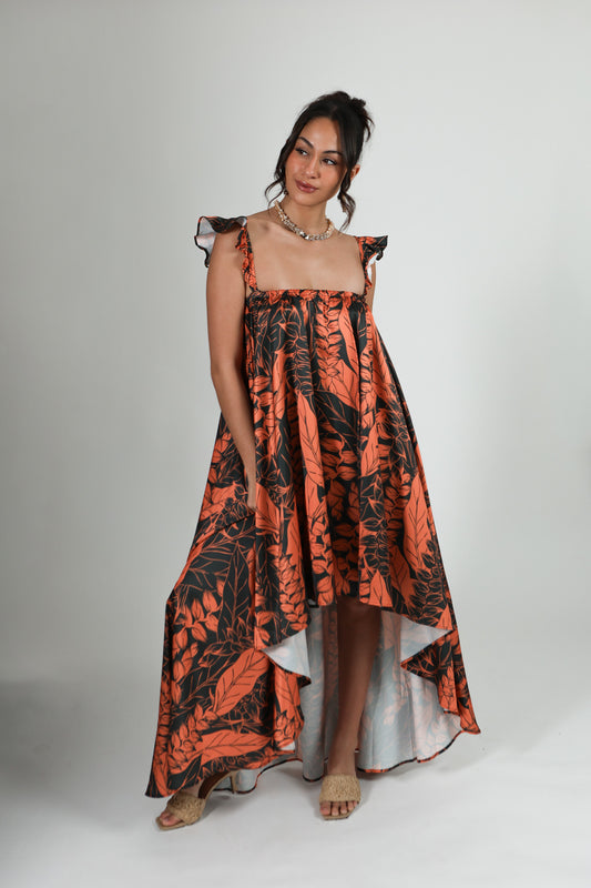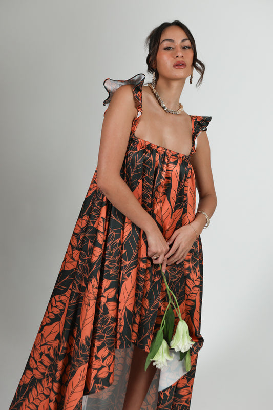 This piece delivers effortless style with its high-low design and ruffle straps. Wear this style on the shoulder or off with ease - changing up your look for different events. Light and airy, the Makamae dress is extra flowy for a sophisticated look.