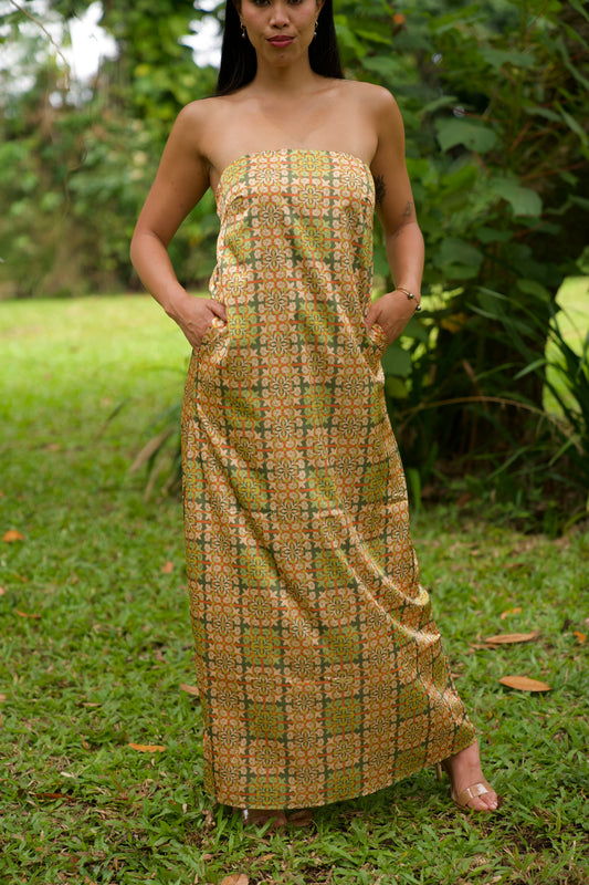 The Wahine Slip Dress delivers effortless elegance in a versatile strapless silhouette. This maxi dress features a streamlined design that transitions seamlessly from day to evening, while practical pockets add everyday functionality.