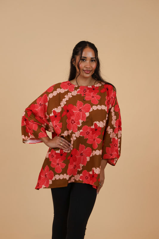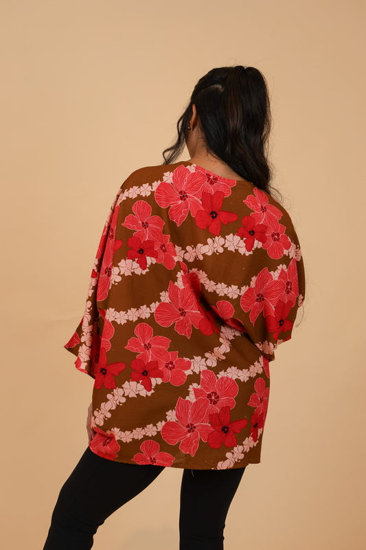 The Makuahine Blouse, carefully crafted to radiate easy and effortless elegance wherever you go. Throw on this blouse over matching pants or jeans for a complete look. We love the flowy features of this top.