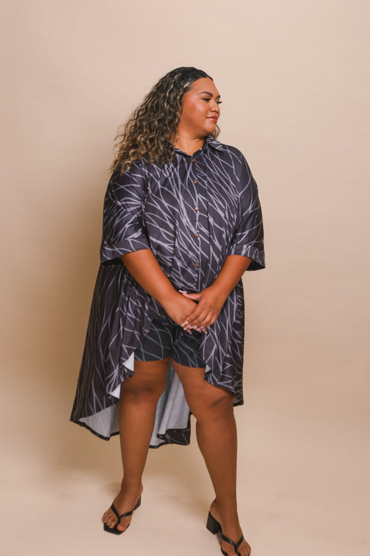 This hi-lo button down blouse is one of our signature styles. Pair it with your favorite flowy pants or skirt. We love the versatility of the style and it will become one of the most worn pieces in your wardrobe! Now in the Kane Collective signature dri-fit material.