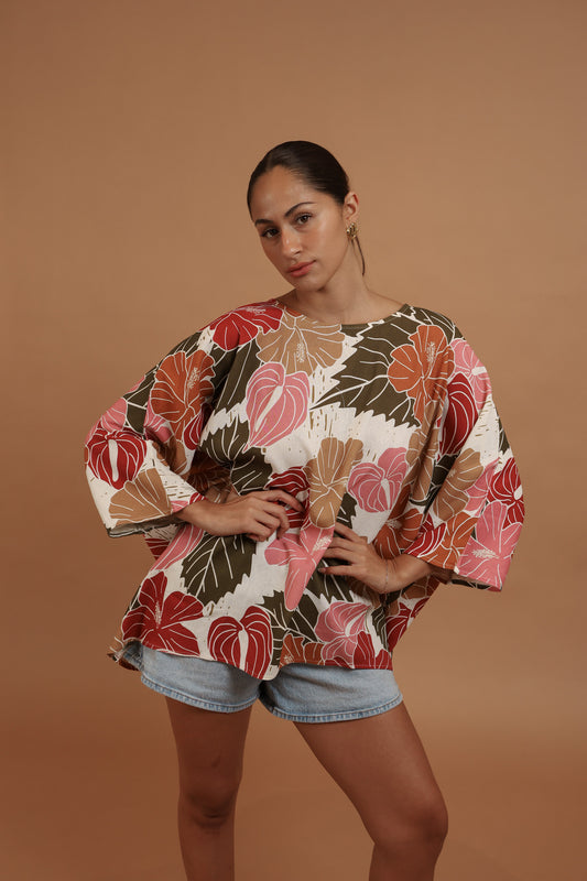 The Makuahine Blouse, carefully crafted to radiate easy and effortless elegance wherever you go. Throw on this blouse over matching pants or jeans for a complete look. We love the flowy features of this top.